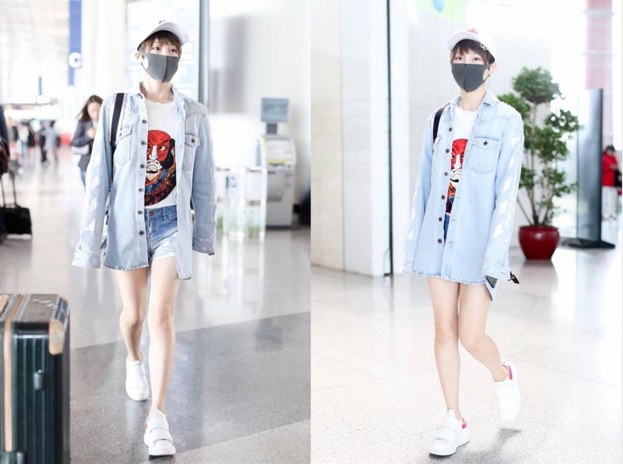 牛仔衬衫可以有很多种搭配方式,比如谢楠这种牛仔衬衫和短裤的搭配就很显瘦,短裤可以修饰大长腿,外套可以遮肉显瘦,而且宽松的版型看起来非常慵懒,一点不觉得单调。